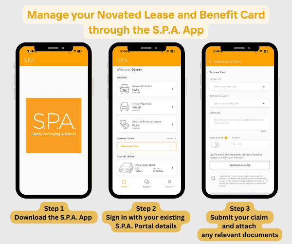 If you’re salary packaging a Novated Lease with S.P.A., the mobile app gives you a simpler way to stay on top of your lease without needing to log in from a desktop or chase up information. Everything is designed to be easy to access and understand, so you always have a clear view of your vehicle costs, contributions and overall position. It also makes everyday tasks like submitting expenses or checking details quicker and more convenient, helping you manage your lease with less effort and more confidence.